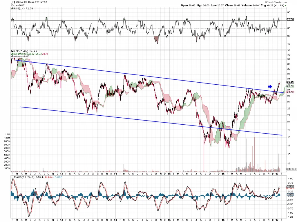 Jak zwykle czeka na nas odpowiedni ETF, w tym przypadku jest to The Global X Lithium ETF o symbolu LIT notowany na nowojorskiej giełdzie. Na ETF-a składają się 32 firmy z całego świata, ale głównie z USA. Spółki upchnięte w funduszu odpowiadają za cały łańcuch wydobywczo-produkcyjny. Są tu więc chilijskie kopalnie, amerykańscy przetwórcy i koreańscy producenci akumulatorów. W ETF-ie siedzi nawet Tesla Motors, która jest współwłaścicielem Gigafactory.