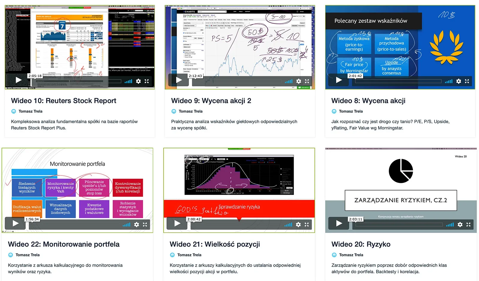 Na czynniki pierwsze rozłożyliśmy specyfikę poszczególnych instrumentów finansowych oraz sposób funkcjonowania giełd zagranicznych. Przeanalizowaliśmy i nauczyliśmy się interpretować wskaźniki makroekonomiczne wyprzedzające zachowanie rynku, a także zbudowaliśmy własne checklisty inwestycyjne oraz złożony autorski system scoringowy pomagający obiektywnie oceniać i filtrować najlepsze okazje inwestycyjne. Na koniec stworzyliśmy kompleksowy plan działania i plan samodzielnej budowy procedur inwestycyjnych.
